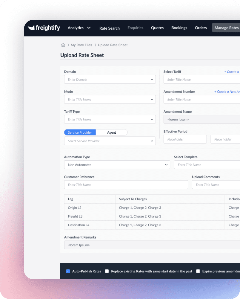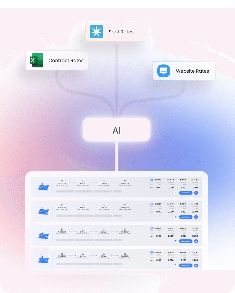 Empower your teams to procure, manage, and distribute rates seamlessly. Unlock higher ROI through full integration with TMS and ERP systems like Cargowise, enterprise-grade security, and the freedom to scale with AI.