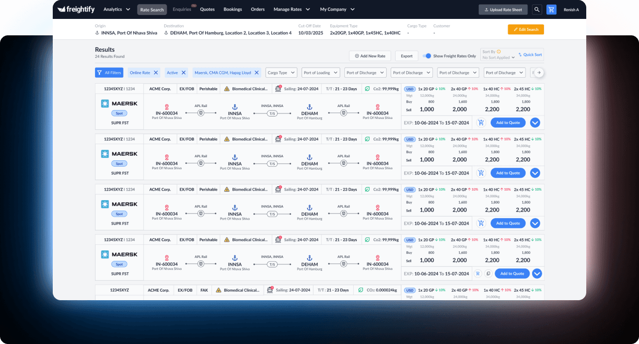Developed by industry experts, Freightify’s AI-powered RMS empowers sales and procurement teams to move from transactional to strategic, driving enterprise growth.